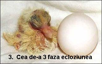 părinţilor, iar aceştia prin regurgitare la dau hrana. Părinţii işi acoperă puii în primele 8-10 zile de la ecloziune. La vîrsta de 6 zile, puii încep a se îmbraca în pene, iar părinţii ii părăsesc tot mai mult, pregătinduse pentru o noua perioada de clocire.